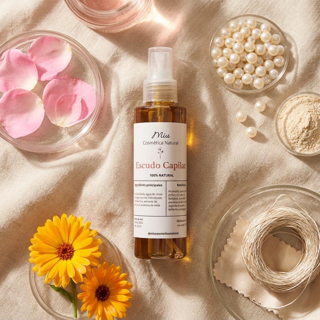 Spray protector capilar con colágeno marino, queratina y proteína de seda. Protege del calor (plancha, secador), controla el frizz, sella las cutículas y aporta brillo. Escudo invisible que cuida tu cabello todo el día. Sin enjuague. 100% natural.