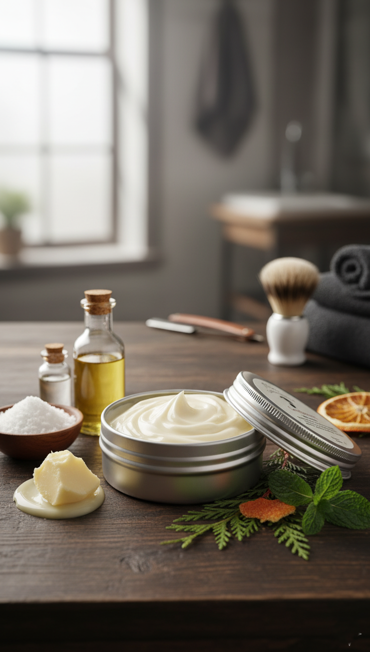 Aroma amaderado masculino y apoyo al equilibrio de la piel.
