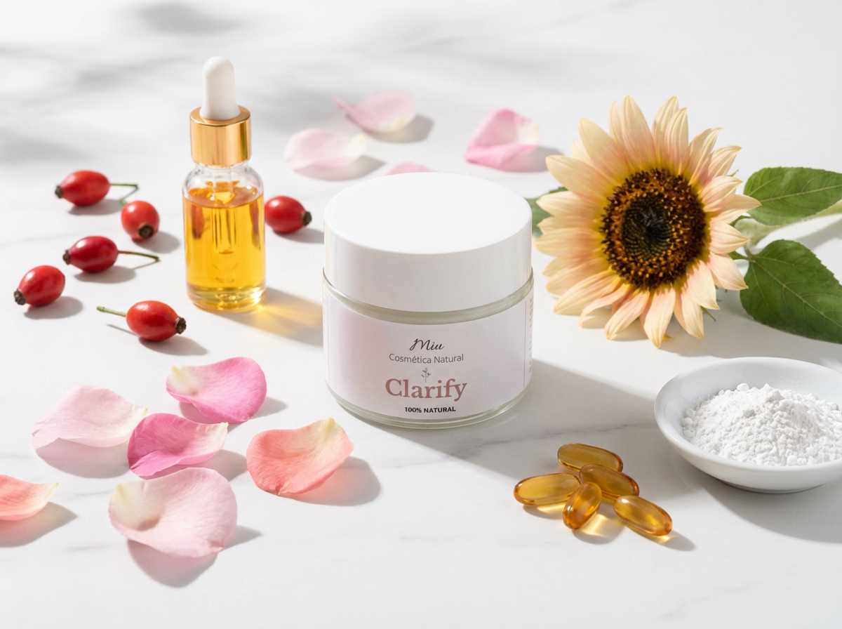 Clarify es una crema facial 100% natural que combina los mejores ingredientes botánicos para proteger, regenerar y embellecer tu piel. Su fórmula única con Rosa Mosqueta y Óxido de Zinc trabaja en armonía para brindarte una piel saludable, protegida y radiante.