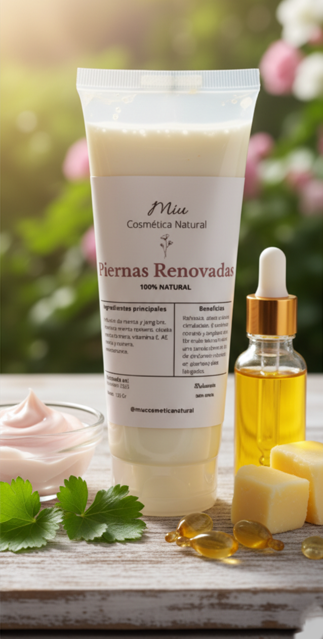 Crema corporal refrescante formulada para aliviar la sensación de cansancio y pesadez en las piernas,